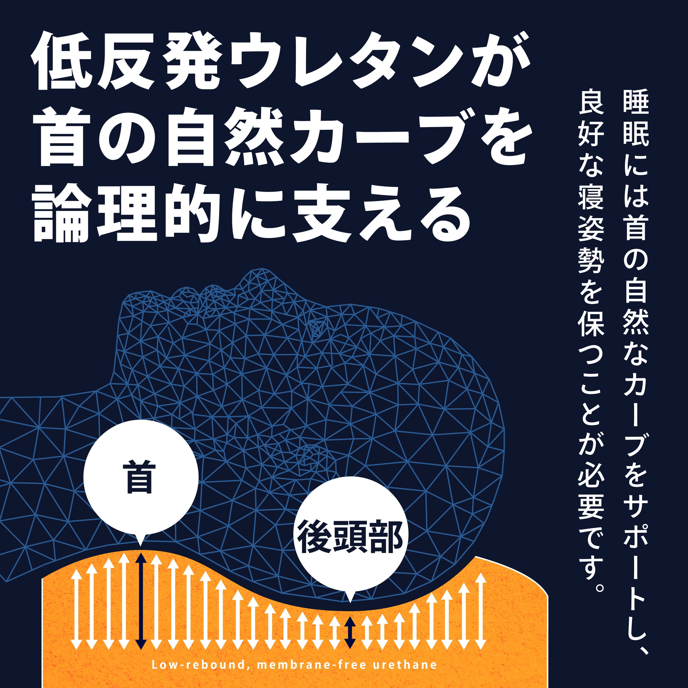 寝ている間自然なカーブを保ってくれる形状が欠かせないため、緩やかなカーブを描き、低反発で首本来のカーブに寄り添う形状に設計しました。